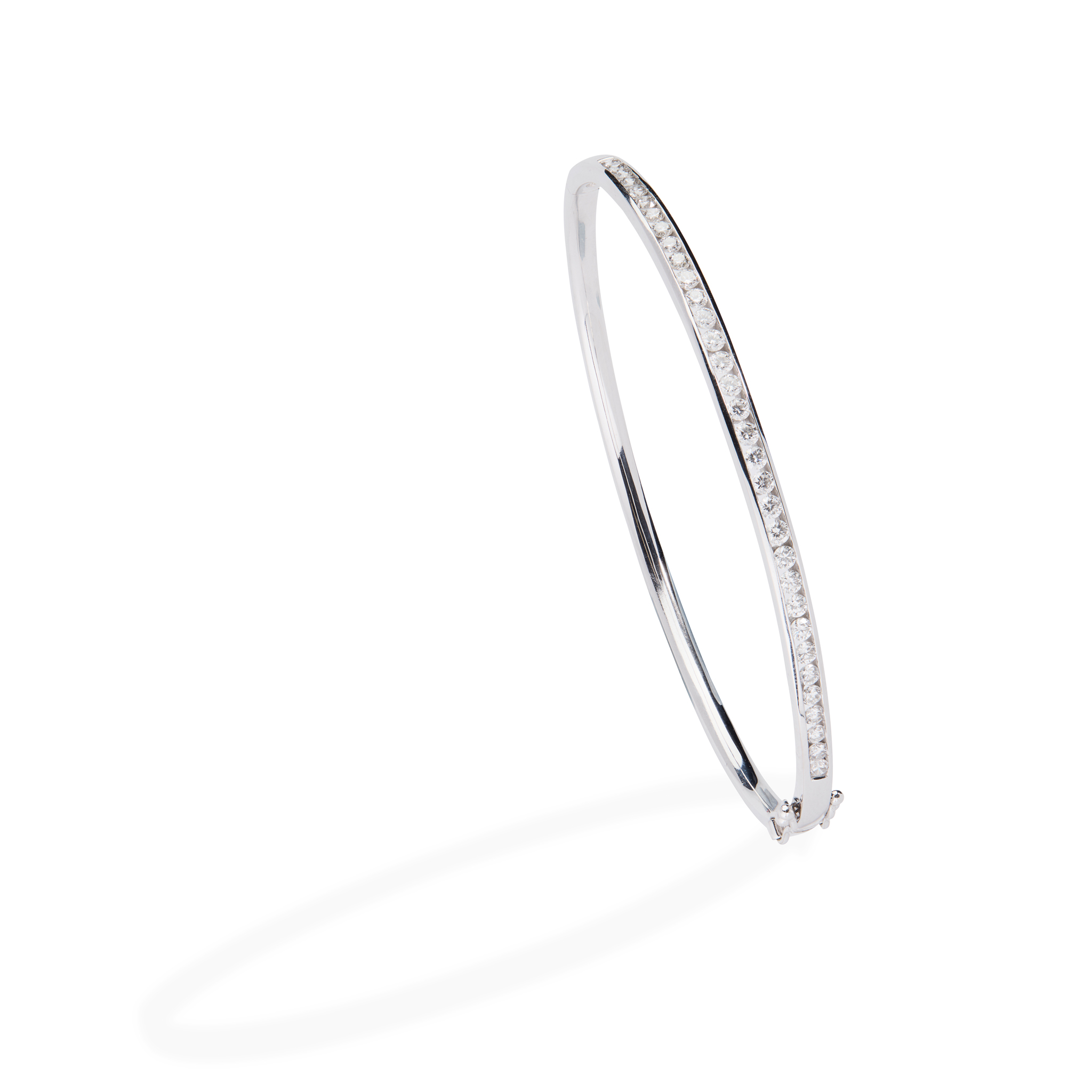 Of hinged design, channel-set with round brilliant-cut diamonds, UK hallmark