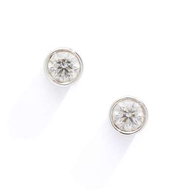 A pair of diamond stud earrings