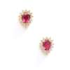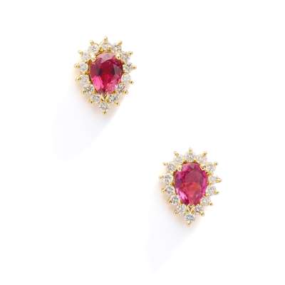 Each claw-set with a pear-shaped pink tourmaline, in a round brilliant-cut diamond surround, post and butterfly fittings, unmarked