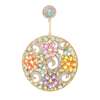 Of circular outline with pierced scrolling and foliate detail, set throughout with various citrines, amethysts, coloured sapphires, diamonds etc, suspended from a smaller zircon and diamond cluster and knife-bar link, UK hallmark