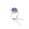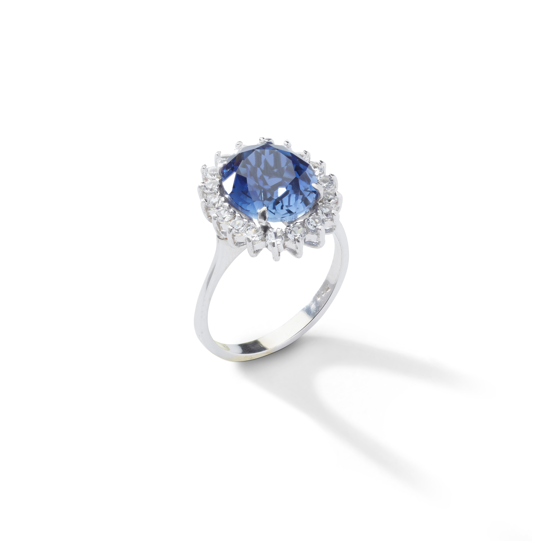 A synthetic sapphire and diamond cluster ring