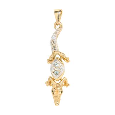 Modelled as an articulated crocodile, round brilliant-cut diamonds detail to the back and tail, round-cut emerald eyes, UK hallmark