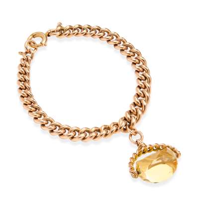 Composed of polished curb-links, suspending a citrine swivel fob, each link marked 375