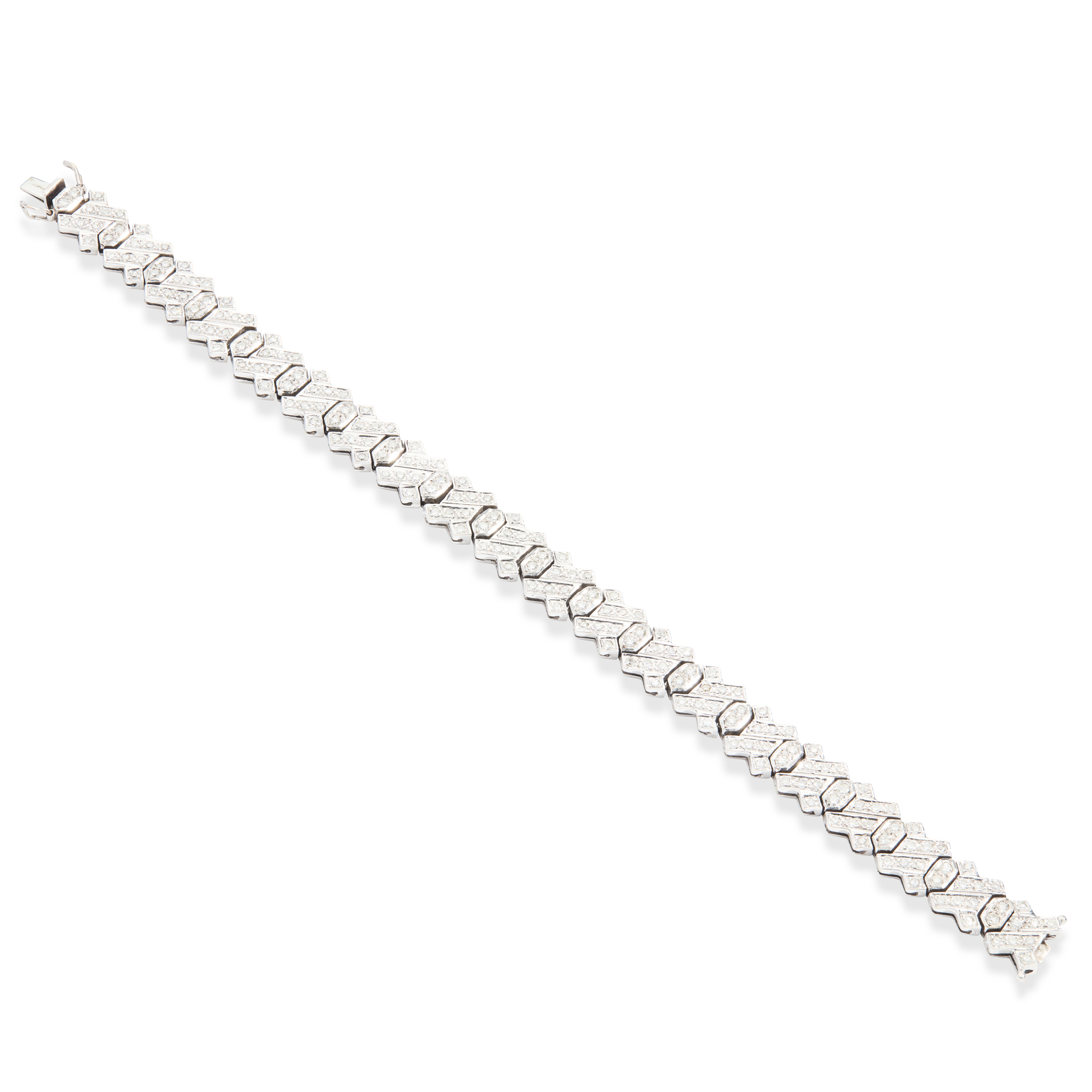 Composed of geometric panels, set throughout with eight-cut diamonds, UK hallmark