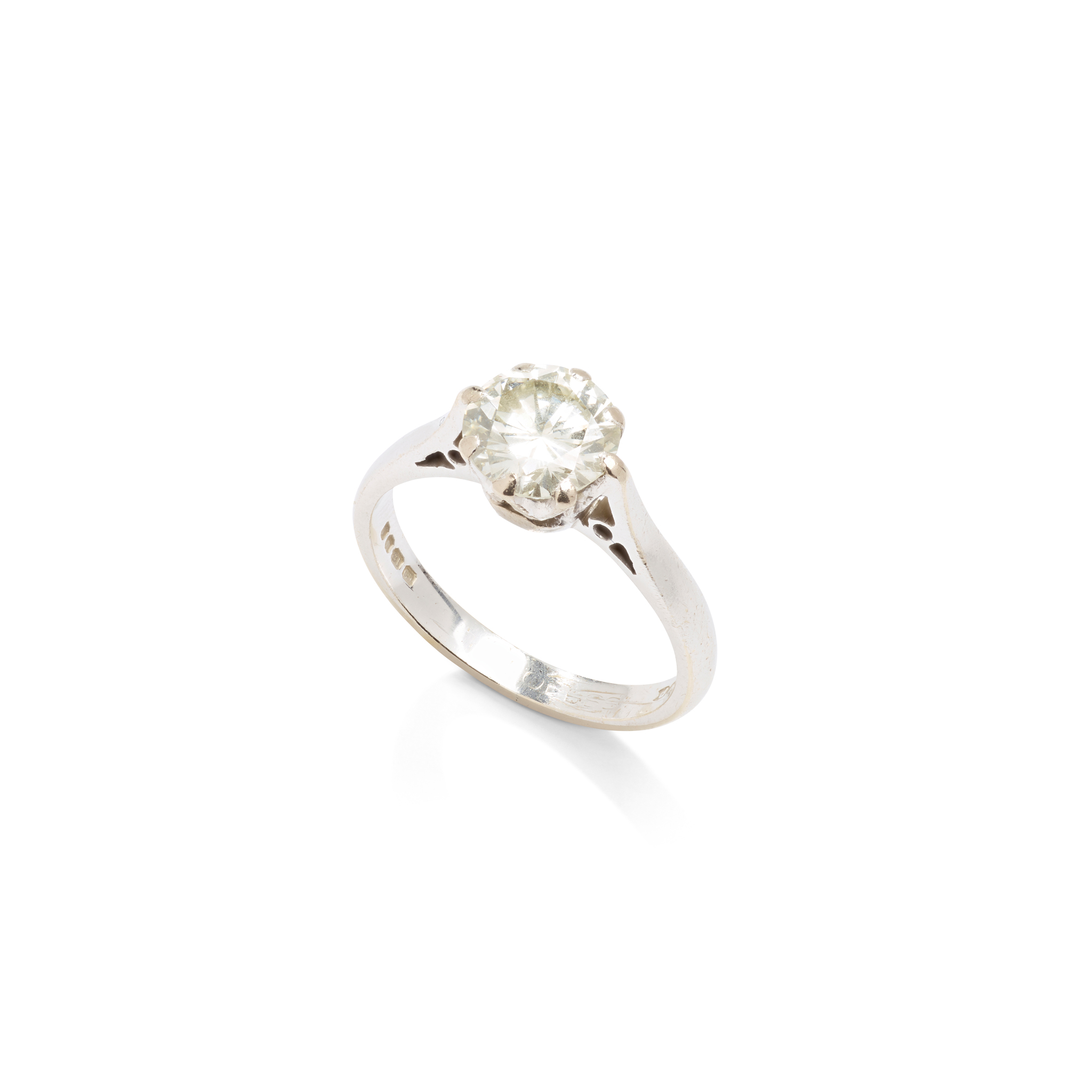 Claw-set with a round brilliant-cut diamond weighing approximately 1.40cts, plain band, UK hallmark