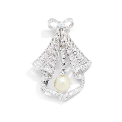A pearl and diamond brooch