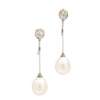 Each collet-set with an old round-cut diamond, the knife-bar drop suspending a natural saltwater pearl, post and butterfly fittings, unmarked