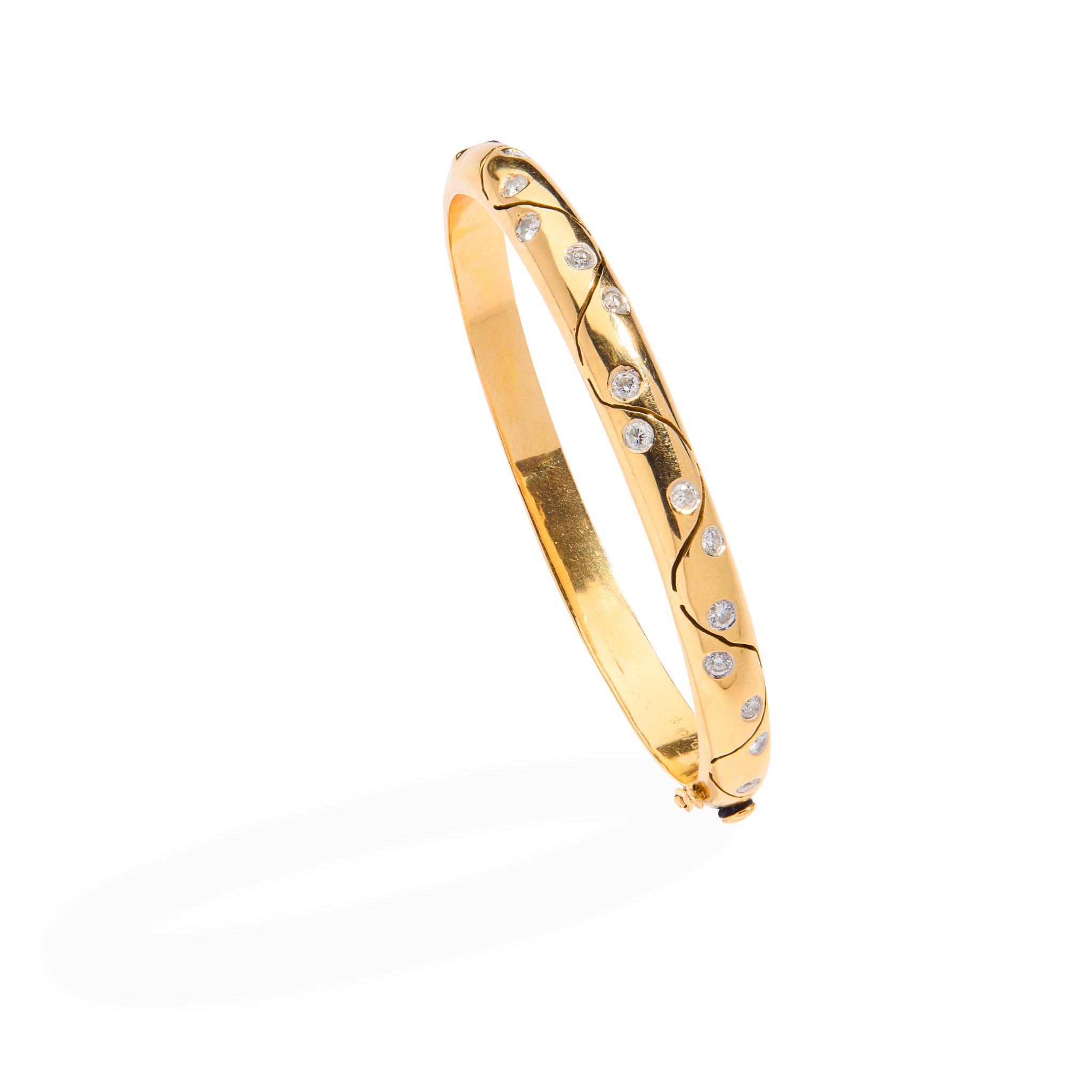 Of hinged design, the front half gypsy-set with small round brilliant-cut diamonds and pierced detail, unmarked