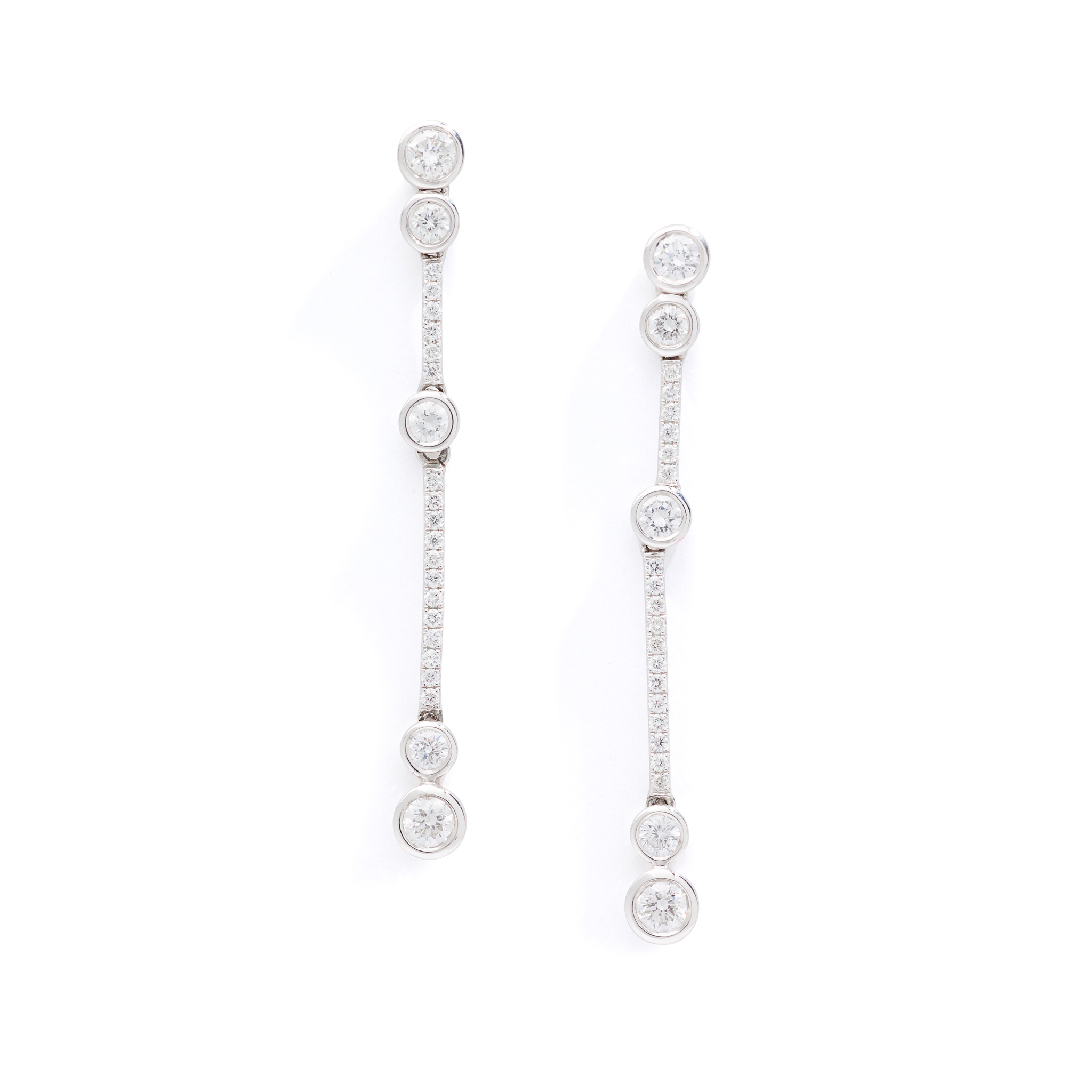 Each collet-set with five round brilliant-cut diamonds, between diamond-set knife-bar links, post and butterfly fittings, unmarked