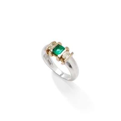 An 18ct gold emerald and diamond three-stone ring