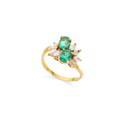 An emerald and diamond dress ring