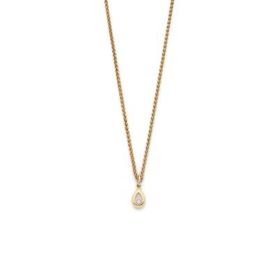 The pear-shaped glazed pendant with one ‘floating’ diamond, fancy-link chain, stamped 750, signed, numbered 1154 9659905