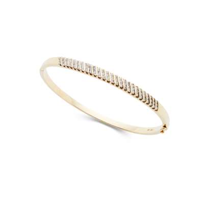 Of hinged design, the front diagonally channel-set with trios of round brilliant-cut diamonds, stamped 14k 585