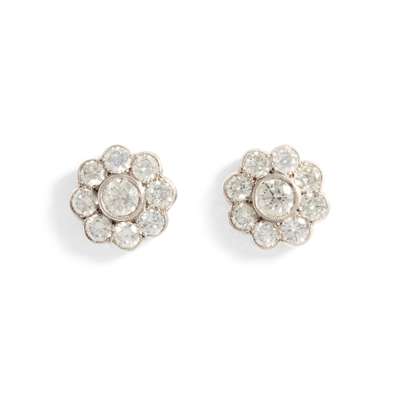 Collet-set with nine round brilliant-cut diamonds, post and butterfly fittings, unmarked