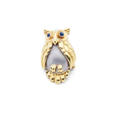 A sapphire and enamel 'Owl' brooch