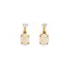 Each claw-set with a round brilliant-cut diamond, suspending an oval cabochon opal, screw-back fittings, stamped 18ct