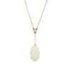 Millegrain-set with a cushion-cut diamond, suspending a knife-bar link and large cabochon opal, integral trace-link chain (broken), unmarked