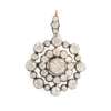 Claw-set with an old round-cut diamond, in a double border of graduated old round-cut diamonds, detachable diamond bale and brooch fitting, unmarked; in a fitted box for London & Ryder … 17 New Bond Street
