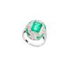 An emerald and diamond cluster ring