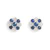 Each modelled as a cluster of five graduated round brilliant-cut sapphires, and four round brilliant-cut diamonds, post and screw-back fittings, UK hallmark
