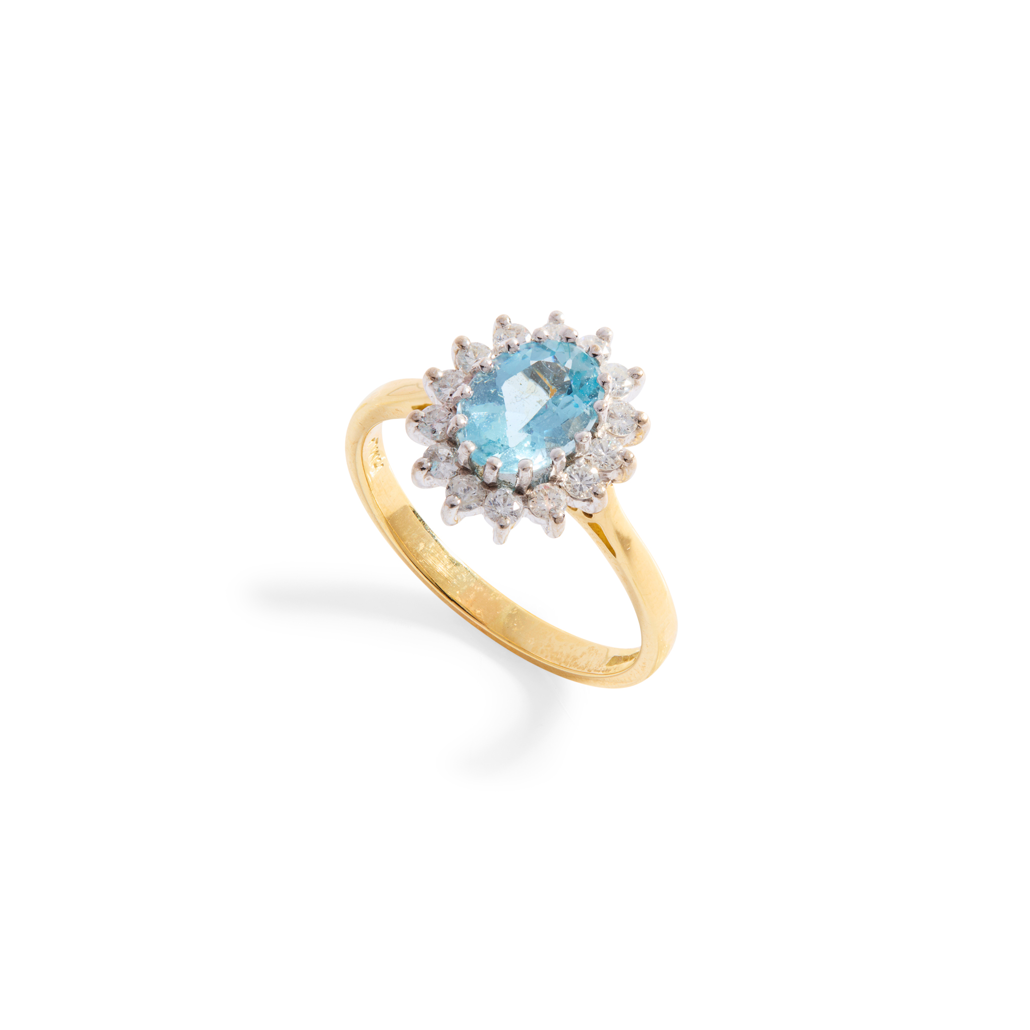 An 18ct gold aquamarine and diamond cluster ring