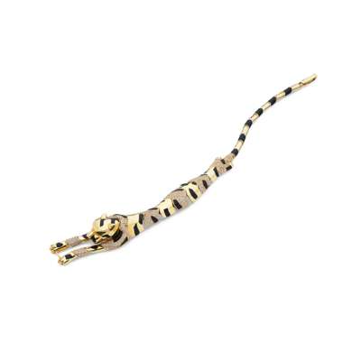 Modelled as a leopard, the links with polished or pavé-set colourless gemstone finish, with black enamel detail, the eyes set with pear-shaped green gemstones, unmarked