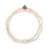 Composed of a single row of cultured pearls, the lozenge-shaped clasp claw-set at intervals with round brilliant-cut diamonds, stamped 14k