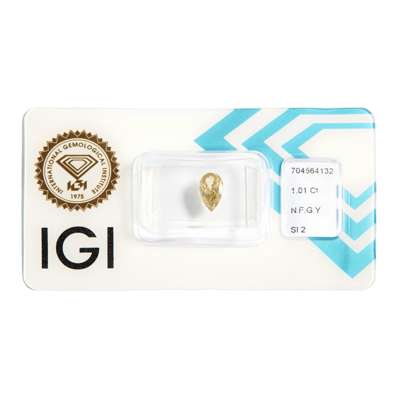 With accompanying International Gemmological Institute report, dated 10.06.2025, numbered 704564132, stating that the diamond is 1.01cts, natural, fancy greenish yellow, SI2 clarity, showing no fluorescence