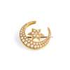Modelled as a crescent moon and star, set with a central old round-cut diamond, in a surround of graduated seed pearls, unmarked; in a fitted box for Hall & Co … Manchester