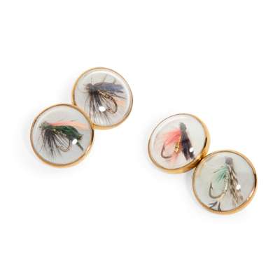 Each circular terminal with fishing-fly detail, belcher-links, UK hallmark