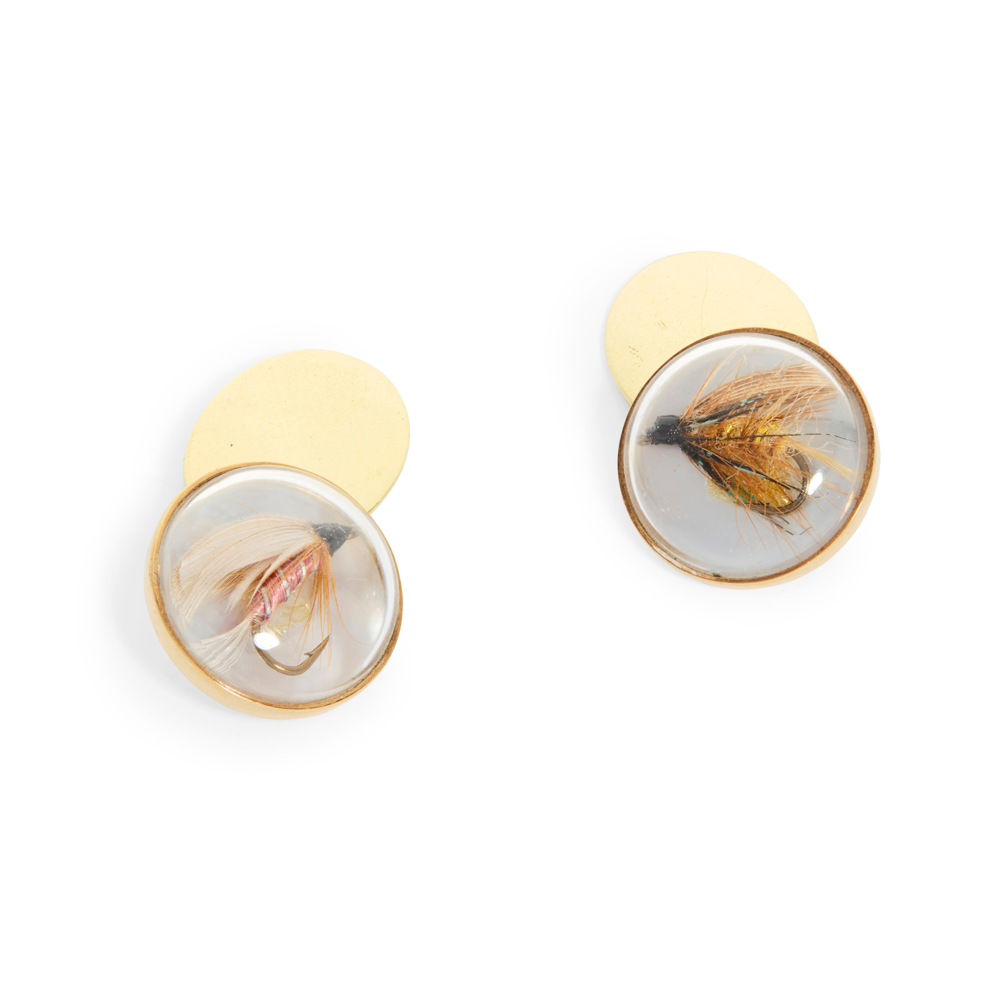 A pair of 15ct gold Essex-Crystal fishing fly cufflinks