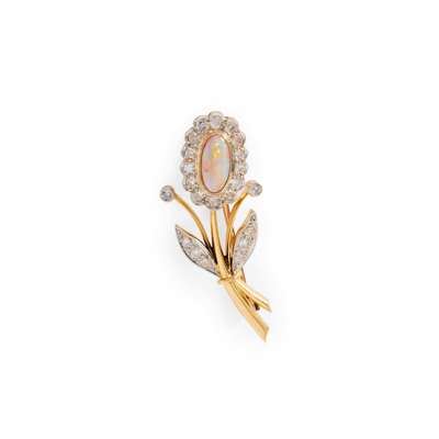 An opal and diamond floral brooch