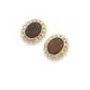 Each collet-set with an oval Canadian ammolite, in a border of round brilliant-cut diamonds, post and butterfly fittings, unmarked