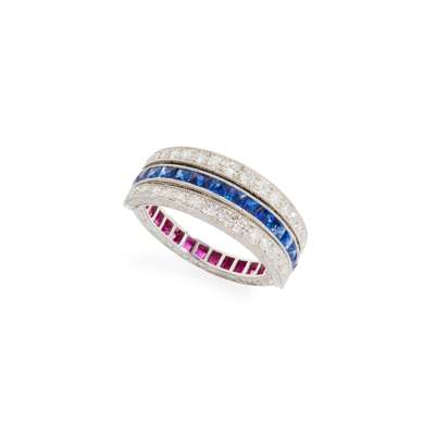 A sapphire, ruby and diamond 'Night and Day' ring
