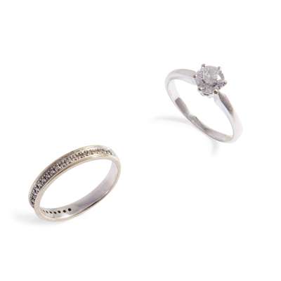 Claw-set with a round brilliant-cut diamond, weighing approximately 0.65cts, plain band, unmarked: together with an eight-cut diamond half-eternity ring, unmarked (2)