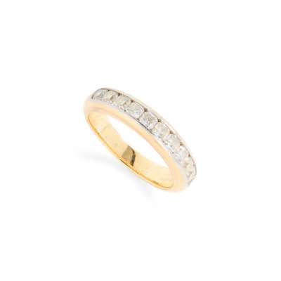 Channel-set with eleven Lucida-cut diamonds, plain band, signed, numbered Pat5970 7044 et al, stamped 750 PT950; in original box and outer box
