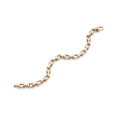 Composed of stylised T-shaped links, singed, stamped Au750, UK hallmark; with original box and outer-box