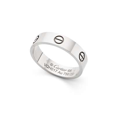 The band decorated at intervals with screwhead motifs, signed, numbered 65 VQH017, stamped Au750, Swiss control marks; with original box