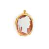 The oval shell cameo depicting the Roman goddess Ceres in profile, the stylised wheat border claw-set at intervals with round brilliant-cut diamonds, stamped 750, with makers monogram