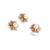 Each cluster set with a central cultured pearl, in a stylised floral surround of orange enamel in a border of round-cut diamonds, post and clip fittings to earrings, plain band to ring, all stamped 18 (2)