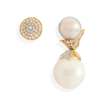 The first modelled as a pavé-set diamond cluster, together with a Tahitian pearl stud, suspending an detachable South Sea pearl and pavé-set diamond drop, post and butterfly fittings, unmarked; butterfly's stamped 750, with makers monogram