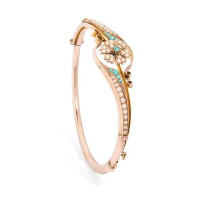 A Victorian turquoise and seed pearl bangle