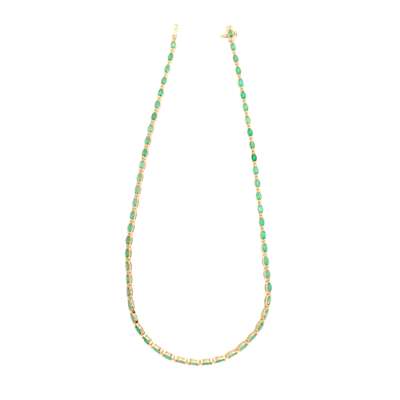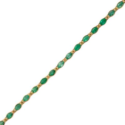 Set with a continuous row of marquise-cut emeralds, stamped K18