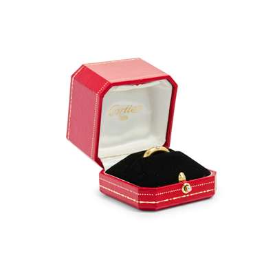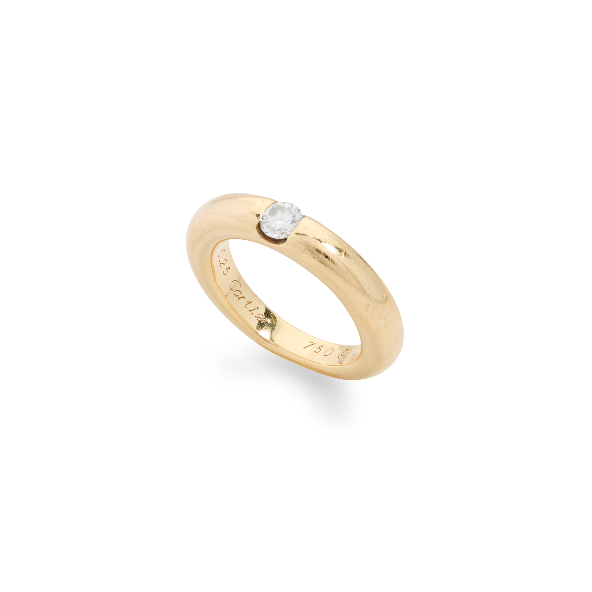 Part collet-set with a round brilliant-cut diamond, plain band, signed and numbered 5275ET; in an original box for Cartier Paris