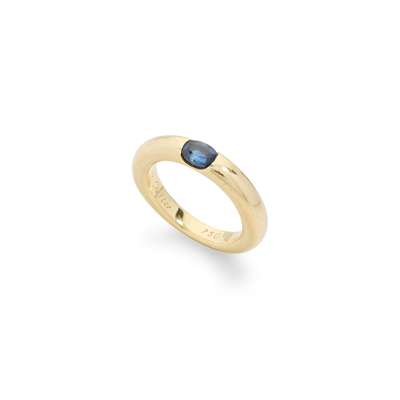 Part collet-set with an oval-cut sapphire, plain band, signed and numbered C52004, stamped 750; in an original box for Cartier Paris