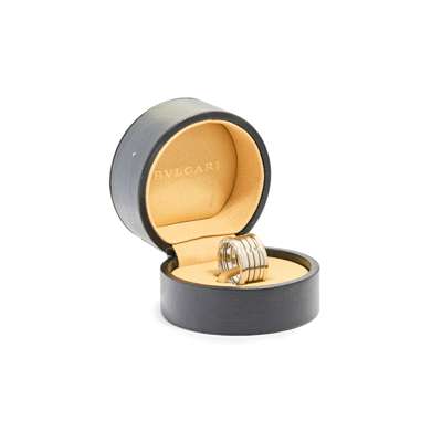 The coiled sprung band engraved BVLGARI, signed, stamped 750, with Swiss marks; with original box