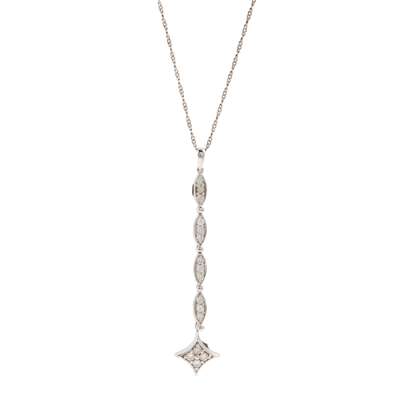 The circular cluster pavé-set with small round brilliant-cut diamonds, with magnetic mechanism allowing the cluster to unfold into a drop, stamped 18KW, to a trace-link chain, unmarked