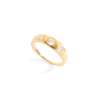 Gypsy-set with three graduated old round-cut diamonds, plain band, stamped 18ct