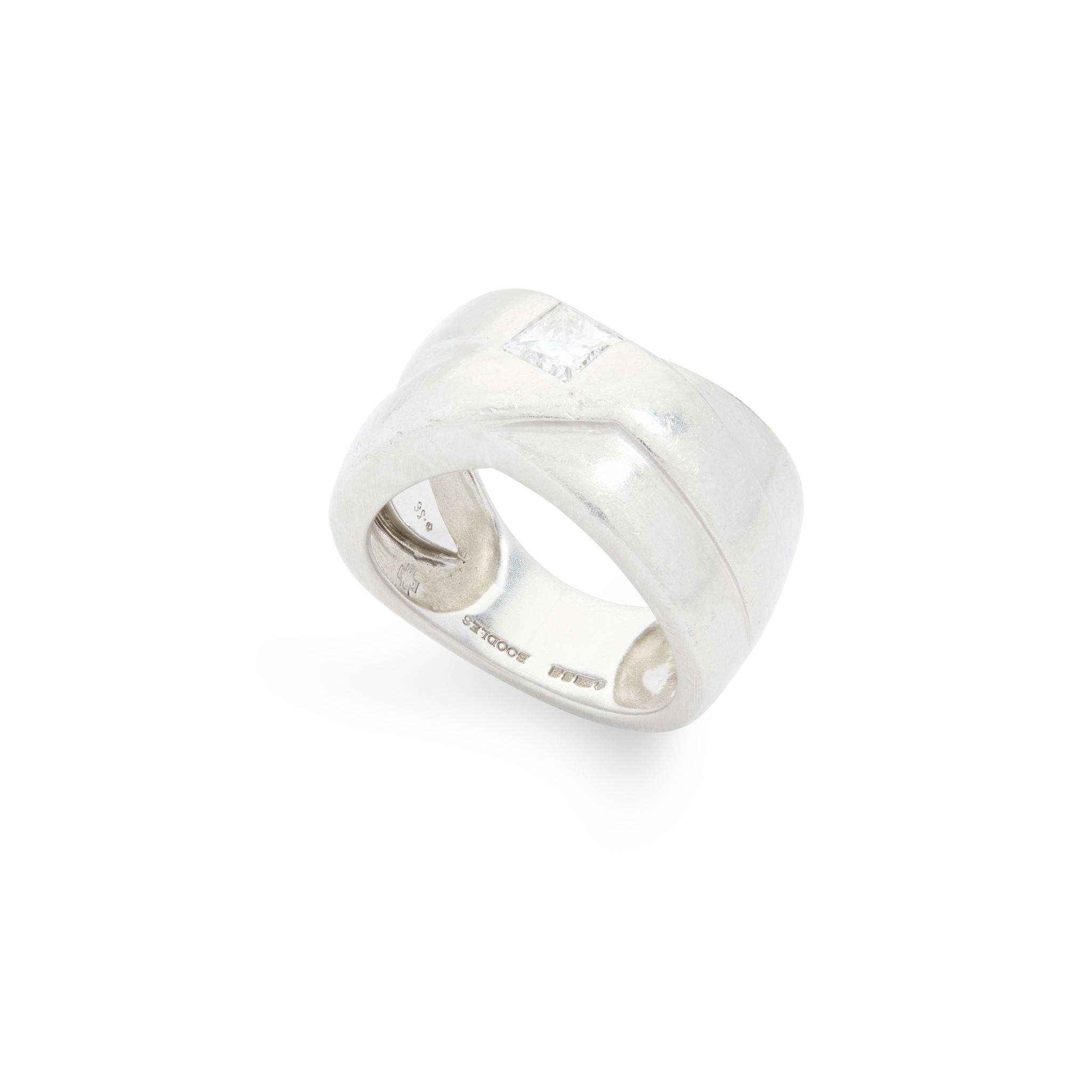 Of cross-over design, gypsy-set with a princess-cut diamond, UK hallmark