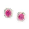 Each claw-set with a cushion-cut ruby in a border of round brilliant-cut diamonds, post and butterfly fittings, unmarked